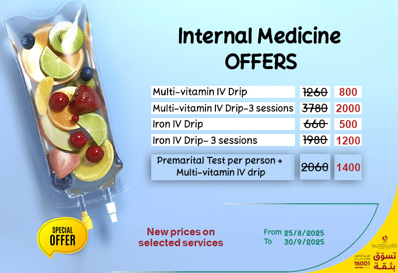 Al-Hayat Medical Center in Qatar announces the availability of a new service in the Internal Medicine Clinic, which is “Intravenous Vitamin Injections ”. This service aims to provide the body with essential vitamins and minerals directly through the vein, contributing to improved overall health, enhanced immune system, and increased energy levels. This method is considered effective for individuals suffering from vitamin deficiencies or those who need an immediate boost to their immunity.